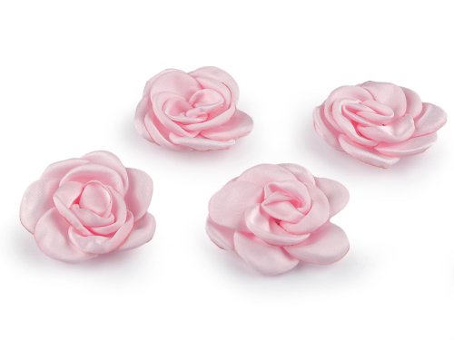 Saténový květ růže k našití a nalepení Ø5 cm - růžová sv. (4 ks)