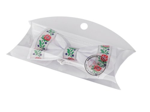 Saténový motýlek ve folklorním stylu je vhodným doplňkem k jakémukoli obleku - dodá mu osobitý šarm. Využijete jej na tematické plesy, taneční kurzy, svatby, návštěvy vinných sklípků, vernisáží apod. Nejdelší délka motýlka okolo krku je 45 cm. Tato délka se dá zkrátit na potřebnou velikost, aby motýlek přesně seděl. Zapínání je plastové.