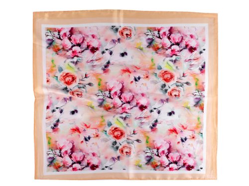 Saténový šátek s potiskem je velice kvalitní, elegantní, využijete jej na každodenní nošení.