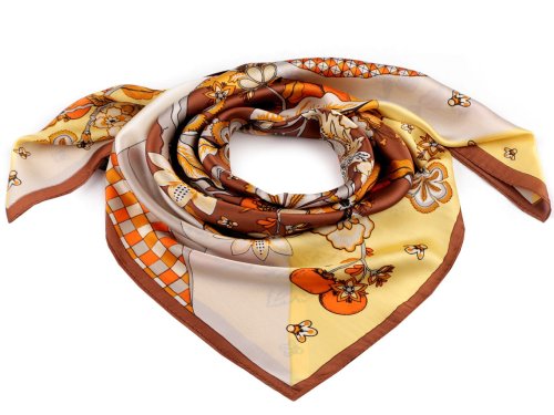 Saténový šátek 70x70 cm - béžová tm.