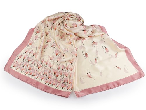 Elegantní saténová šála s květy je lehounká a měkká, na dotek připomíná hedvábí. Využijete ji do společnosti i na všední nošení ke kabátu, saku, halence, svetříku, šatům apod.