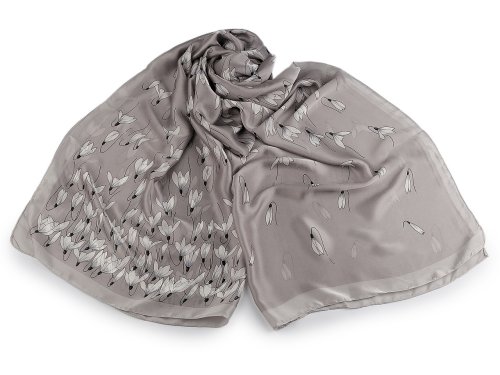 Elegantní saténová šála s květy je lehounká a měkká, na dotek připomíná hedvábí. Využijete ji do společnosti i na všední nošení ke kabátu, saku, halence, svetříku, šatům apod.