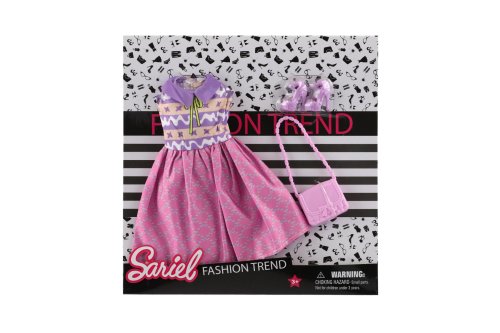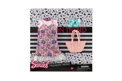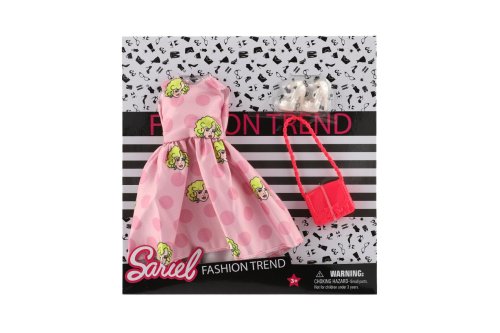 Oblečky pro panenky s doplňky, které žádné stylové panence nesmí chybět! Obsah balení: šaty, boty a kabelka. Rozměr balení: 21 x 21 cm