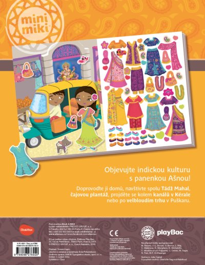 Novinka ze série, která patří k našim nejprodávanějším, přibližuje malým čtenářům něco z indické kultury a kouzla dalekého Orientu. S panenkou Ašnou tím nejjednodušším a zároveň hravým způsobem poodhalí každodenní život tamních lidí, jejich zvyky nebo navštíví zajímavá místa. Díky tomu děti získají a zpřesní si své představy o cizí zemi, jejích obyvatelích, folklóru či módě. Více než 300 samolepek, atraktivní obrázky a dvojjazyčné texty učiní jejich poznávání ještě zajímavějším a komplexnějším.