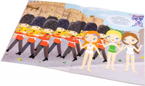 Objevuj společně s Kate Spojené království! Navštivte Big Ben a velké londýnské parky, pochutnejte si na minidortíku zvaném cupcake v útulné kavárničce, objevujte staré skotské hrady a projděte se po romantických anglických plážích. 300 samolepek pro tvé britské panenky