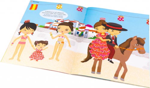 Tato série představuje nejmenším tahitskou, španělskou, indiánskou či eskymáckou kulturu. Děti zábavnou formou získají a zpřesní si své představy o cizích zemích a jejich obyvatelích. V každé knížce objeví 300 samolepek a řadu obrázků zkušené ilustrátorky a vystudované stylistky Julie Camel, která svým postavičkám, jejich oděvům i kulisám vdechla autenticitu. Velkou zajímavostí jsou v neposlední řadě i dvojjazyčné texty v obrázcích, díky nimž bude pro malé čtenáře poznávání ještě zajímavější a komplexnější. Poznejte šaty z nejrůznějších koutů světa! Francouzské, indiánské, španělské, tahitské, americké, indické, ruské, nebo japonské? Mezi tolika úžasnými šaty si jistě vyberete… Které se vám nejvíc líbí?