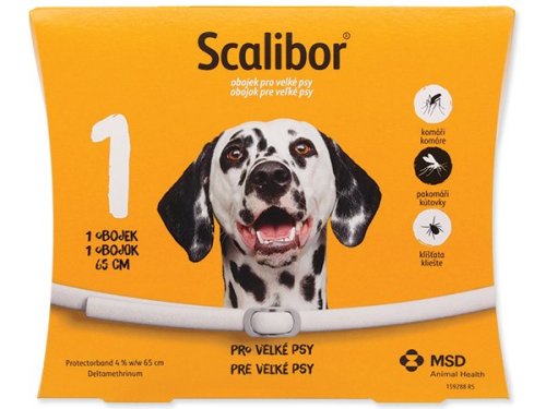 OBSAH LÉČIVÝCH A OSTATNÍCH LÁTEK Jeden bílý obojek o délce 48 cm obsahuje: Léčivá látka: Deltamethrinum 0,760 g Excipiens: Oxid titaničitý (E171) 0,285 g INDIKACE Prevence infestace klíšťaty (Ixodes ricinus; Rhipicephalus sanguineus) po dobu 5-6 měsíců. Prevence sání krve pakomárem rodu Phlebotomus (Phlebotomus perniciosus) po dobu 5-6 měsíců. Repelentní účinek na dospělé komáry druhu Culex pipiens pipiens po dobu 6 měsíců. KONTRAINDIKACE Nepoužívat u štěňat mladších 7 týdnů. Nepoužívat u psů s kožními lézemi. Nepoužívat u zvířat v případě známé přecitlivělosti na pyrethroidy. Nepoužívat u koček. NEŽÁDOUCÍ ÚČINKY Vzácně byly pozorovány lokalizované kožní reakce (pruritus, erytém, vypadáváni srsti) postihující krk nebo kůži obecně, které mohou indikovat lokální nebo generalizovanou hypersenzitivní reakci. Ve velmi vzácných případech byly také hlášeny změny v chování (např. letargie nebo přecitlivělost) často spojeny s iritací kůže. Velmi vzácně byly pozorovány gastrointestinální symptomy, jako jsou zvracení, průjem a nadměrné slinění. Ve velmi vzácných případech byly pozorovány neuromuskulární potíže, jako jsou ataxie a třes svalů. Tyto příznaky obyčejně samovolně odezní do 48 hodin po sundání obojku. Pokud se objeví některý z těchto symptomů, obojek by se měl sundat. Léčba může být pouze symptomatická, protože není známé žádné specifické antidotum. Četnost nežádoucích účinků je charakterizována podle následujících pravidel: