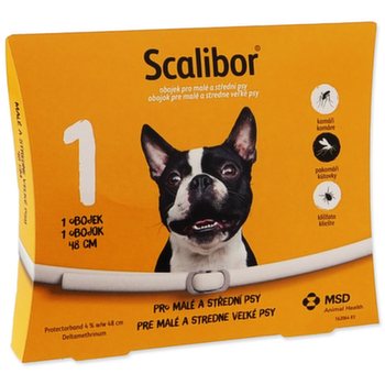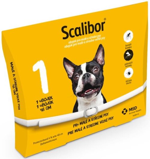 OBSAH LÉČIVÝCH A OSTATNÍCH LÁTEK Jeden bílý obojek o délce 48 cm obsahuje: Léčivá látka: Deltamethrinum 0,760 g Excipiens: Oxid titaničitý (E171) 0,285 g INDIKACE Prevence infestace klíšťaty (Ixodes ricinus; Rhipicephalus sanguineus) po dobu 5-6 měsíců. Prevence sání krve pakomárem rodu Phlebotomus (Phlebotomus perniciosus) po dobu 5-6 měsíců. Repelentní účinek na dospělé komáry druhu Culex pipiens pipiens po dobu 6 měsíců. KONTRAINDIKACE Nepoužívat u štěňat mladších 7 týdnů. Nepoužívat u psů s kožními lézemi. Nepoužívat u zvířat v případě známé přecitlivělosti na pyrethroidy. Nepoužívat u koček. NEŽÁDOUCÍ ÚČINKY Vzácně byly pozorovány lokalizované kožní reakce (pruritus, erytém, vypadáváni srsti) postihující krk nebo kůži obecně, které mohou indikovat lokální nebo generalizovanou hypersenzitivní reakci. Ve velmi vzácných případech byly také hlášeny změny v chování (např. letargie nebo přecitlivělost) často spojeny s iritací kůže. Velmi vzácně byly pozorovány gastrointestinální symptomy, jako jsou zvracení, průjem a nadměrné slinění. Ve velmi vzácných případech byly pozorovány neuromuskulární potíže, jako jsou ataxie a třes svalů. Tyto příznaky obyčejně samovolně odezní do 48 hodin po sundání obojku. Pokud se objeví některý z těchto symptomů, obojek by se měl sundat. Léčba může být pouze symptomatická, protože není známé žádné specifické antidotum. Četnost nežádoucích účinků je charakterizována podle následujících pravidel: