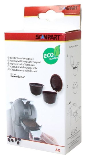V balení 3 kusy Tvar pro Dolce Gusto Pro opakované použití na vlastní espresso kávu v kávovarech Dolce Gusto Užívejte si vlastní kávu z kávovarů Dolce Gusto dle vlastních chutí, výrazně laciněji a ekologičtěji