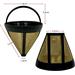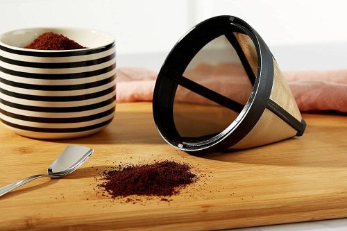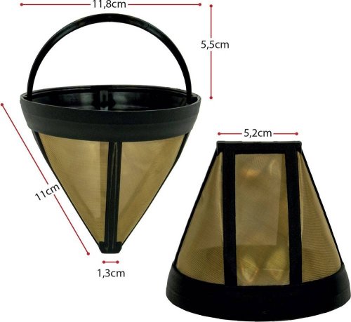 Materiály a design Zlaté kávové filtry jsou vyrobeny ze síťoviny z nerezové oceli potažené 23karátovou zlatou fólií. Tyto filtry, označované také jako zlaté, jsou mezi milovníky kávy oblíbené, protože zlato je neutrální látka, která nezhoršuje chuť kávy. Kávové filtry z nerezové oceli jsou naproti tomu vyrobeny z jemně tkaného pletiva, a protože nejsou potaženy zlatem, může to způsobit mírně odlišnou výslednou chuť nápoje v důsledku absorpce kávových olejů. Filtry jsou vyráběny tak, aby byly kompatibilní s různými typy kávovarů. Nerezová síťka filtrů účinně filtruje použitou kávu. Zlaté filtry ale obecně produkují čistší chuť, protožena rozdíl od filtrů z nerezové oceli vůbec neabsorbují kávové oleje, což má za následek lahodnou a plnou chuť.