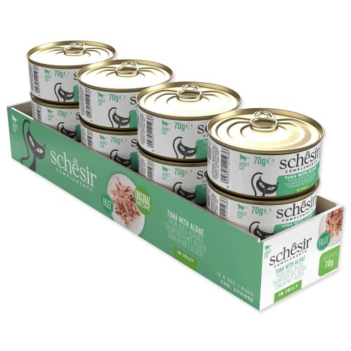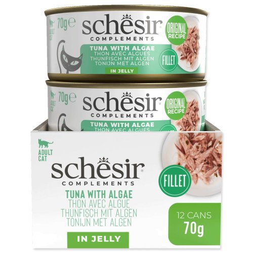 Dopřejte své kočce Schesir Complements v želé, vynikající krmivo speciálně vyvinuté pro dospělé kočky.