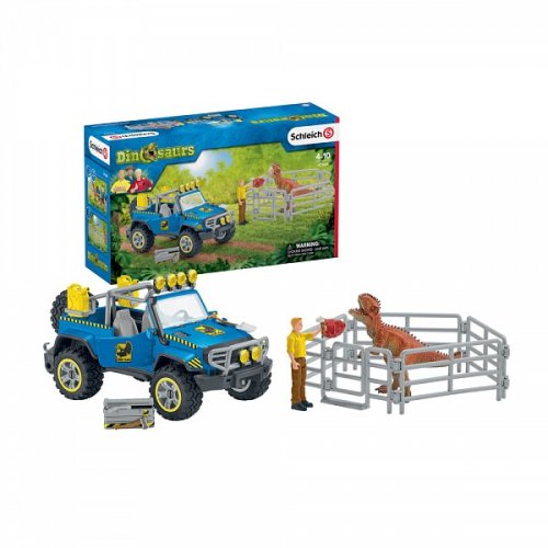 Pronikni do světa dinosaurů! S terénním vozidlem se LUIS může rychle dostat na základnu a chytat Giganotosauruse pomocí velké masové návnady. V případě, že při své cestě vjede do bahna může si pomocí své sady nástrojů snadno vyměnit kola nebo pomocí navijáku vytáhnout terénní vozidlo znovu ven. Terénní vozidlo od Schleich® Dinosaurs nabízí celou řadu herních možností. Figurka s pohyblivými pažemi a nohama! Terénní vozidlo se základnou dino od Schleich® Dinosaurs je perfektním doplňkem výzkumné stanice (41462). Balení obsahuje: 1x terénní auto s navijákem, 1x výzkumník Luis, 1x Giganotosaurus, 1x návnada, 1x sekera, 1x turniket, 1x rýč, 1x hliníková krabička, 4x plotový prvek, 1x vstupní brána, 1x samolepka. Schleich jsou realistické a do detailů propracované figurky, kde se designeři soustředili na filozofii těla, strukturu svalů a celkový výraz postavičky. Děti si tak mohou hrát se zvířátky z celého světa, pravěkými dinosaury, filmovými a pohádkovými postavičkami, které jsou věrnou kopií svých předloh, a kouzelnými elfy a vílami z magického světa Bayala. Vhodné pro děti od 4 let.