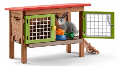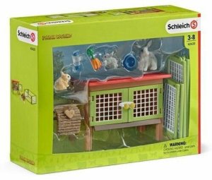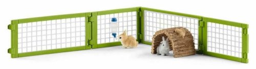 Balení obsahuje: králíkárnu, ohrádku, králíka se 2 mláďaty, láhev s vodou, misku, svazek mrkve a tunel. Dva malí králíčci se stěhují do svého nového domova! Již je pro ně připravena prostorná králíkárna, tak aby mohli ihned žrát z misek a upíjet z lahvičky. Ve svém výběhu mohou mláďata dovádět celý den. Při tom objeví tunel, pod kterým si mohou hrát skvěle na schovávanou.