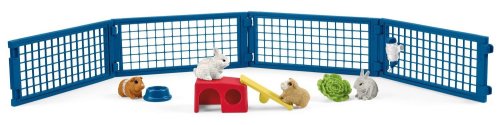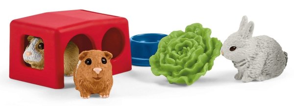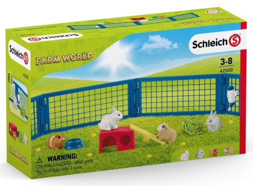 Jedinečné figurky, které jsou jako živé! Figurky a doplňky Schleich Farm World jsou propracovány do posledního detailu. Pronikni do světa zvířat, nasbírej figurky a objev tak zvířata naší planety. Balení obsahuje: 2x morče, 2x králík, 1x domeček pro zvířátka, 1x houpačka, 1x miska, 1x napáječka na vodu, 1x salát, 4x plot S králíky a morčaty z farmy je stále co objevovat. Zvířata se schovávají ve svém přístřešku,pijí z láhve na vodu, okusují salát nebo přebíhají přes houpačku, která také slouží jako praktická rampa, k lezení nebo přeskakování na střechu svého domečku. Schleich jsou realistické a do detailů propracované figurky, kde se designeři soustředili na filozofii těla, strukturu svalů a celkový výraz postavičky. Děti si tak mohou hrát se zvířátky z celého světa, pravěkými dinosaury, filmovými a pohádkovými postavičkami, které jsou věrnou kopií svých předloh, a kouzelnými elfy a vílami z magického světa Bayala. Vhodné pro děti od 3 let.