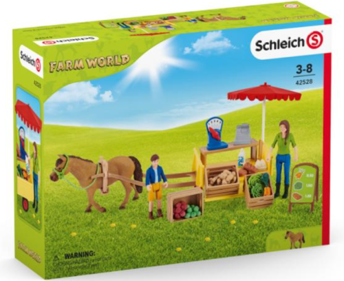 Jedinečné figurky, které jsou jako živé! Figurky a doplňky Schleich Farm World jsou propracovány do posledního detailu. Pronikni do světa zvířat, nasbírej figurky a objev tak zvířata naší planety. Ben a jeho matka Laura naloží mobilní farmářský stánek čerstvými produkty přímo z jejich farmy. Na jejich vůz se vejdou šťavnatá jablka, čerstvě snesená vejce, čerstvý salát, brambory z pole, chlazené mléko a křupavý chléb. Jakmile je vše naloženo, zapřáhnou svého pracovitého poníka k vozu a vydají se prodávat své produkty. Mají s sebou dost jablek? Schleich jsou realistické a do detailů propracované figurky, kde se designeři soustředili na filozofii těla, strukturu svalů a celkový výraz postavičky. Děti si tak mohou hrát se zvířátky z celého světa, pravěkými dinosaury, filmovými a pohádkovými postavičkami, které jsou věrnou kopií svých předloh, a kouzelnými elfy a vílami z magického světa Bayala. Vhodné pro děti od 3 let.