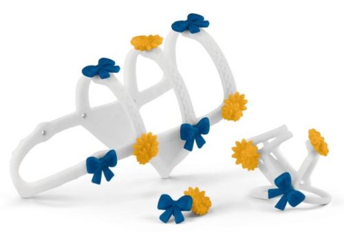 Dekorační doplňky koňských show Schleich® Horse Club přicházejí v oblíbených barvách Tori – modré a žluté! Mašle a květiny mohou být připevněny k uzdě a postroji, jak chcete, takže Toriho kůň má vždy nový svěží vzhled. Čím hezčí a individuálnější je jeho dekorace a ozdoba, tím více bodů ji porota dá na velké přehlídce koní v Lakeside. Sada obsahuje: 1x uzda, 1x postroj, 6x ozdobné mašle, 6x ozdobné květiny. Schleich jsou realistické a do detailů propracované figurky, kde se designeři soustředili na filozofii těla, strukturu svalů a celkový výraz postavičky. Děti si tak mohou hrát se zvířátky z celého světa, pravěkými dinosaury, filmovými a pohádkovými postavičkami, které jsou věrnou kopií svých předloh, a kouzelnými elfy a vílami z magického světa Bayala. Vhodné pro děti od 3 let.