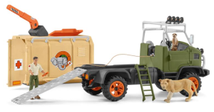 Jedinečné figurky, které jsou jako živé! Figurky a doplňky Schleich jsou propracovány do posledního detailu. Pronikni do světa zvířat, nasbírej figurky a objev tak zvířata naší planety. Správce parku Tom a jeho kamarád Ted jedou společně ve velkém záchranném voze pro zvířata Schleich®Wild Life na svou první společnou misi. Na Safari najdou Tom a Ted lvici, která musí být urgentně ošetřena. Tom a Ted tedy spustí ošetřovací kabinu auta na zem. Nyní lze začít s ošetřením, jelikož auto je na to perfektně vybaveno. Obvazy a stetoskop má ranger Tom stále při ruce. Po ošetření bude lvice přeložena do transportního boxu. Jeřáb nejdříve vytáhne kabinu zpět nahoru a následně lze na auto připevnit transportní box. Tom a Ted vypustí lvici u velkého vodního zdroje. Tam se zotaví! Funkce velkého nákladního automobilu: otočný jeřáb, snímatelný kontejner, zabudovaná nákladní rampa, lanový naviják s flexibilní montáží a klec lze uložit do nákladního auta. Balení obsahuje : 1x lev, 1x permoník, 1x správce parku, 1x jeřáb s lanovým navijákem, 1x klec, 1x nákladní auto, 1x žebřík, 1x kontejner, 1x stetoskop, 1x obvaz. Schleich jsou realistické a do detailů propracované figurky, kde se designeři soustředili na filozofii těla, strukturu svalů a celkový výraz postavičky. Děti si tak mohou hrát se zvířátky z celého světa, pravěkými dinosaury, filmovými a pohádkovými postavičkami, které jsou věrnou kopií svých předloh, a kouzelnými elfy a vílami z magického světa Bayala. Vhodné pro děti od 3 let.