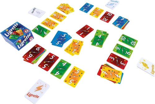 Zábavná karetní hra, ve které rozhoduje bystrost a rychlost. Představte si hru Ligretto ve více než čtyřech hráčích. Žádný problém! Pouze se přidají další barvy. Ligretto se nabízí ve třech provedeních: modrá, zelená a červená. Pokud tato provedení spojíte, můžete hrát až ve 12 hráčích. Princip hry: Hráči se snaží vyložit doprostřed stolu co nejvíce karet do hromádek jedné barvy podle pořadí čísel (od 1 do 10) a tím co nejrychleji vypotřebovat své karty z hromádky před sebou (nazvané Ligretto). Rychlost vykládání je klíčová – všichni hrají současně, nikdo na nikoho nečeká a je tedy důležité reagovat rychleji než spoluhráči! Obsah balení: - 160 karet (4 sady po 40 kartách)