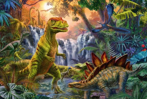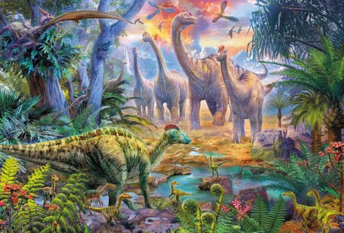 Čtyři puzzle pro děti se 60 a 100 dílky s obrázky dinosaurů.