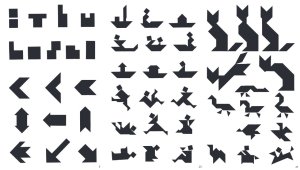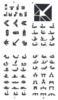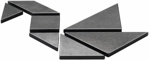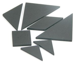 Tangramy SCHMIDT v černé variantě s 800 předlohami včetně řešení. Skládání Tangramů má pouze dvě pravidla: musíte využít všech 7 dílků a dílky se nesmí překrývat. Skládejte podle předloh nebo si vymyslete vlastní tvary. Řešení úloh je vyobrazeno na konci brožury. Nevzdávejte se však příliš brzy. Hlavolam podle staré čínské legendy baví malé i velké po řadu let. Moudrý starý muž nesl skleněnou tabuli zabalenou do hedvábí, plátna a kůže do královského paláce. Cesta byla dlouhá a mudrc musel překonat poušť i řeku, přejít lesy, pole i pohoří. Na skalnatém vrcholu hory muž pohlédl do dáli a spatřil palác, do kterého měl namířeno. Zahleděn do dáli přehlédl malý kamínek, o který zakopl a skutálel se dolů z hory. Ihned rozbalil balík, a k jeho překvapení se sklo nerozříštilo na milion kusů, ale jen na 7 částí - čtverec, kosodélník a 5 trojúhelníků. Nejprve zkusil složit sklo do původního tvaru čtverce. Pak udělal obdélník a po mnoha pokusech i kosodélník. Uvědomil si, že z těchto tvarů je možné vytvořit nespočet kombinací a zajímavých tvarů. Když dorazil do paláce, začal králi vyprávět příběh svého putování a kousky skla využil k vyobrazení toho, co během cesty potkal: domy, lidi, zvířata, lodě i hory. Král byl hrou tvarů ohromen a tak se zrodilo umění tangramu. Baleno v praktické plechové krabičce. Balení obsahuje: 7 černých herních dílků, 800 předloh včetně řešení.