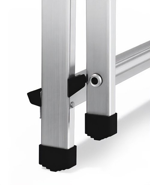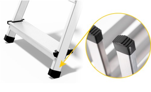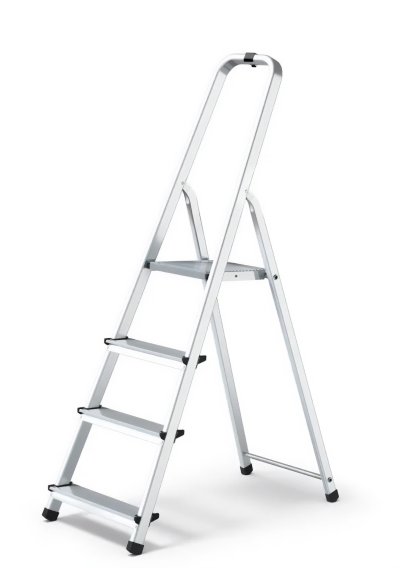 Typ - 1x4 jednostranné s madlem Pevná 4-stupňová žebříková konstrukce s jednostranným vstupem Bezpečné madlo 60 cm Široká pracovní plošina 25 cm x 26 cm Vroubkovaná plocha schůdků. Speciální protiskluzové nožičky zajišťují nejvyšší bezpečnostní standard. Háček pro zavěšení pro komfort při práci.