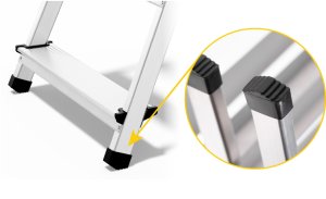 Typ - 1x5 jednostranné s madlem Pevná 5-stupňová žebříková konstrukce s jednostranným vstupem Bezpečné madlo 60 cm Široká pracovní plošina 25 cm x 26 cm Vroubkovaná plocha schůdků. Speciální protiskluzové nožičky zajišťují nejvyšší bezpečnostní standard. Háček pro zavěšení pro komfort při práci.