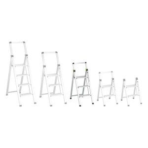 • Široký hliníkový profil – na rozdíl od typických domácích žebříků, kde je profil otočen k uživateli užší stranou, tento zdůrazňuje velký hliníkový povrch, který odráží současné modernistické interiéry založené na velkých vertikálních/horizontálních děleních