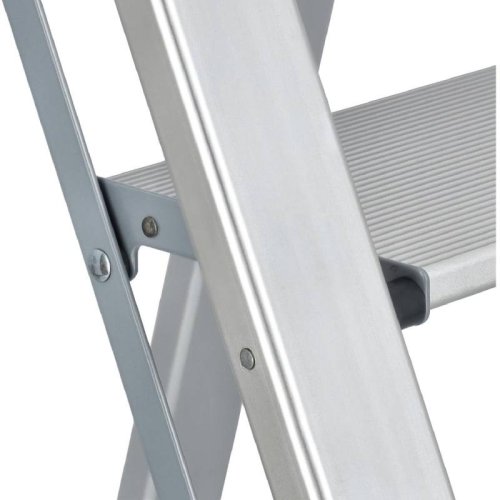 Široký hliníkový profil – na rozdíl od typických domácích žebříků, kde je profil otočen k uživateli užší stranou, tento zdůrazňuje velký hliníkový povrch, který odráží současné modernistické interiéry …