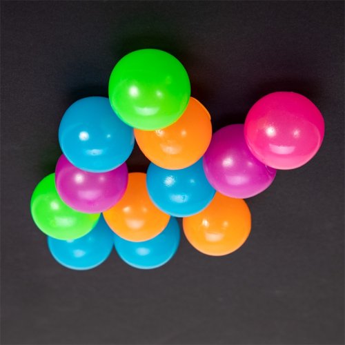 Užijte si vzduchem naplněnou mačkavou zábavu s NeeDoh Stickums. Stickums je balení 12 míčků v pěti barvách svítících ve tmě, jsou naplněny vzduchem. Tyto jedinečné antistresové míčky mají lepkavý povrch, což znamená, že je lze nejen mačkat, ale také je pro zábavu házet na stěny, okna, stropy a jakýkoli rovný povrch. NeeDoh Stickums je skvělá hračka, zvláště vhodná pro děti s ADD, ADHD, OCD, autismem a úzkostí. Pomáhá dětem soustředit se a věnovat pozornost dané hračce. Kuličky jsou vyrobeny z netoxických materiálů. Vnější materiál produktů NeeDoh je termoplastická guma, vnitřní náplň je polyvinylalkohol, oba materiály jsou netoxické. Náplní je PVA, který se používá také jako potah ve farmaceutických přípravcích a doplňcích stravy. Hlavní vlastnosti: antistresový míček i hračkapodporuje soustředěnost a pozornost12 kuliček v každém baleníideální na cesty