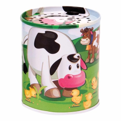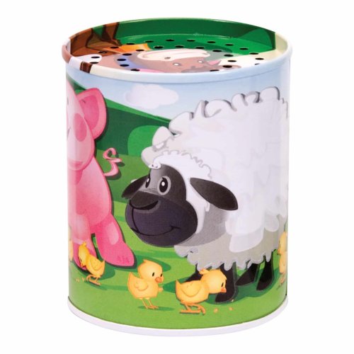 Naše plechovka se zvukem k Vám přináší farmu domů. Tato klasická plechová hračka je oblíbená po celá léta a pomáhá dětem rozvíjet rozpoznávání zvuků, když ji přiřazují ke správnému zvířeti. Kravičky, ovečky, kuřátka se pasou na polích, prasátka se vyhřívají v bahně a všichni jsou velcí kamarádi. Stačí jen plechovku otočit dnem vzhůru, a uslyšíte jejich zvuk. Designy a zvuky se mohou lišit. Otáčení plechovky také pomáhá rozvíjet koordinaci rukou a očí. Sledujte, jak se Vaše dítě těší z poslechu zábavných zvuků. Hlavní vlastnosti: podporuje představivostpomáhá rozpoznávat zvukypomáhá rozvíjet koordinaci rukou a očíplechová hračka v retro stylu