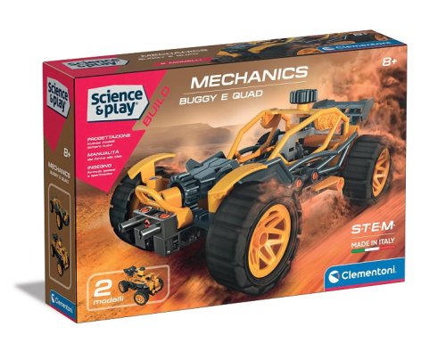 Vědecká sada pro zábavu při sestavování buginy nebo čtyřkolky. Stavebnice obsahuje více než 90 dílů pro stavbu 2 různých modelů vybavených převodovými mechanismy. Ilustrovaný návod vysvětluje, jak sestavit buginu krok za krokem. Spousta speciálních dílů, jako je převodový modul, převody a mnoho dalších, usnadňuje hraní vozidel. Aplikace „Science & Play Build“ integruje herní zážitek tím, že poskytuje montážní pomůcku pro všechny modely díky interaktivním 3D animacím. Rozměry balení: 27,6x4,5x18,8cm. Věk: 8+