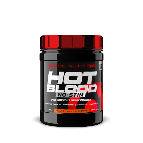 HOT BLOOD NO-STIM je ochucený předtréninkový nápoj bez stimulantů, s cukrem a se sladidly. Ideální pro ty, kteří trpí nesnášenlivostí kofeinu. No-Stim podporuje vaše tělo během fyzicky náročných nebo vysoce intenzivních tréninků, protože je vědecky dokázáno, že 3 g kreatinu v produktu zvyšují výkon při sekvenčních, krátkotrvajících a vysoce intenzivních cvičeních, jako je silový trénink nebo intervalové kardio! Vitamin B6 a niacin přispívají ke správnému fungování nervové soustavy*. Zinek přispívá ke správné kognitivní funkci*. Vitamin C a vitamín E přispívají k ochraně buněk před oxidačním stresem*. Folát, vitamín B12 a vitamín A přispívají k normální funkci imunitního systému*. Chrom přispívá ke správné látkové přeměně makronutrientů*. Biotin přispívá ke správné látkové přeměně důležité pro tvorbu energie*.