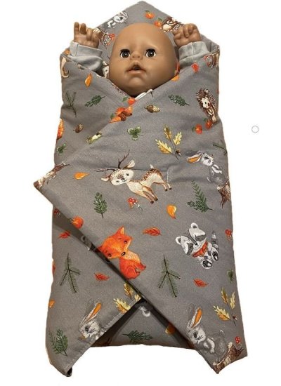 SDS Rychlozavinovačka pro panenky Zvířátka z lesa Rychlozavinovačka pro panenky vyrobena ze 100% Bavlny, výplň ze 100% Polyesteru je pevně všitá uvnitř, zapínání na suchý zip, možno prát na 30°C, ušito v ČR, lze objednat i jiný rozměr, dodací doba cca 14 dní Materiál: 100% Bavlna, výplň: 100% Polyester Rozměr: 1x 60x60 cm