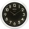 Nástěnné hodiny Napájení z baterie Rozměry 395 MM Pouzdro ve tvaru kruhu Plastové pouzdro Bílá barva pouzdra Ručičkový ciferník Černá barva ciferníku Ciferník s arabskými čísly