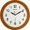 Nástěnné hodiny Napájení z baterie Rozměry 300 MM Pouzdro ve tvaru kruhu Plastové pouzdro Hnědá barva pouzdra Ručičkový ciferník Bílá barva ciferníku Ciferník s arabskými čísly