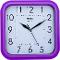 Nástěnné hodiny Napájení z baterie Rozměry 250 MM Pouzdro ve tvaru čtverce Plastové pouzdro Fialová barva pouzdra Ručičkový ciferník Bílá barva ciferníku Ciferník s arabskými čísly