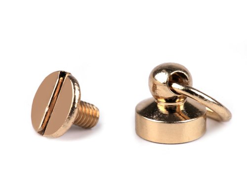 Sedlářský nýt se skládá ze dvou částí, které do sebe pohodlně zašroubujete. Doplněný je malým kroužkem. Nýt je vhodný jako dekorační prvek na kabelky, pouzdra, opasky, postroje nebo obojky. Do kroužku můžete připevnit střapec, rolničku, přívěsek apod. Délka po zašroubování obou částí je 9 mm.
