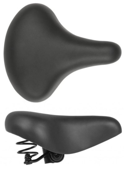 Sedlo široké s pružinami Rozměr: 245 x 210mm S podsedlovým zámkem Ocelové vzpěry Hmotnost: 594g Barva: černá Balení: servisní v sáčku