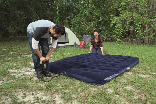 Semišová nafukovací matrace KINGSIZE je vyrobena z kvalitních materiálů, které zaručují vysokou odolnost. Anatomické tvarovaní s povrchovou úpravou (příjemný semišový povrch) zajišťuje maximální pohodlí. Matrace je určena jak pro vnitřní, tak vnější použití. Blokující se ventil pro rychlé vypouštění. Přiložena vysoce odolná záplata. Rozměr: 203cm x 183cm x 22cm. Rozměry balení: 30,5 x 35 x 13 cm.