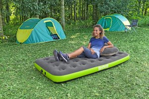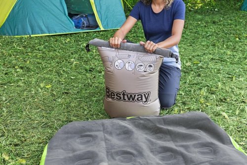 Bestway® Nafukovací matrace Roll & Relax™ je praktické řešení pro pohodlné spaní doma i na cestách. Díky integrované AirCinch™ pumpě ji nafouknete během cca 50 sekund. Matrace nabízí pohodlný velurový povrch a stabilní Coil-Beam konstrukci, která zajišťuje rovnoměrnou oporu těla. Je vyrobena z odolného vinylu a má nosnost až 150 kg, takže je ideální jako postel pro hosty, na kempování i cestování. Po použití ji snadno vyfouknete, složíte a uložíte – kompaktní a vždy připravená k použití. Matrace je vhodná pro vnitřní i venkovní použití. Obsah: 1 nafukovací matrace, 1 vak k nafouknutí matrace (slouží také jako voděodolný vak na matraci a polštář), 1 opravná záplata. Počet osob: 1. Rozměr nafouknuté matrace: 22 x 99 x 188 cm. Rozměr balení: 15,5 x 54,5 x 15,5 cm.