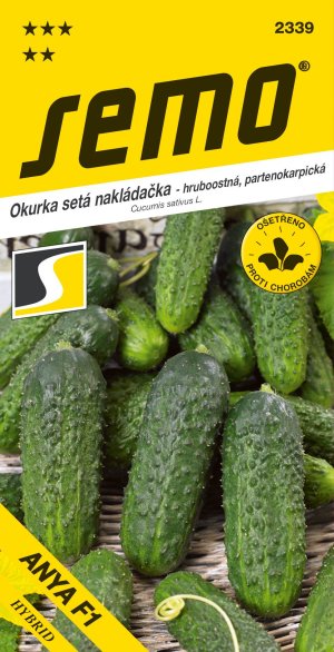 ANYA F1 - další partenokarpická odrůda s hrubou bradavičnatostí. Velmi výnosná, vhodná pro intenzivní způsob pěstování, plody začínají už za prvním listem, jsou atraktivní a vyrovnané, světle zelené, geneticky nehořké. Jsou o něco kratší než u odrůdy Dafne F1.