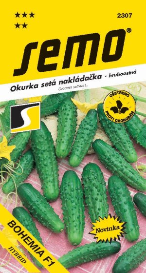 BOHEMIA F1 - velmi raná středně vzrůstná odrůda s vysokou odolností k plísni okurkové. Poskytuje delší, štíhlé tmavozelené plody s velmi příznivým podílem třídění. Bohemia je geneticky nehořká.