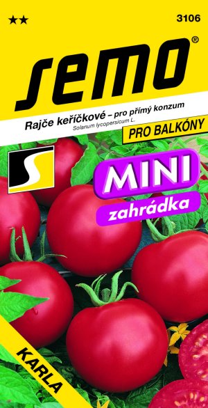 KARLA - středně raná odrůda s velmi kompaktním keřem určená pro balkóny, pařeniště, malé zahrádky apod. Plody jsou ploše kulovité, velké, velmi pevné s vynikající barvou dužniny, s vysokým obsahem lycopenu. Odrůda je vhodná pro samozásobení a krátkodobé skladování (2 – 3 týdny). Je-li použita na řezy, vyniká její vysoce intenzivní červená barva dužniny. Je vhodná i na výrobu domácích kečupů a protlaků.