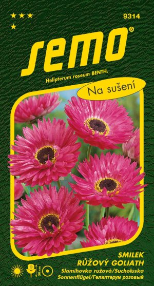 Trsnatá, přímá letnička pěstovaná hlavně pro sušení suchomázdřitých úborů. Vhodná i do smíšeného záhonu. Květy pro sušení sklízíme plně otevřené. Roste dobře na slunci a v chudé, dobře propustné půdě. Nepřehnojujeme dusíkem, podpořili bychom vegetativní růst na úkor kvetení. Tetraploidní odrůda s velkými květy v jasně růžové barvě. Barva květů výrazně kontrastuje s černým středem. Dlouhé a pevné stonky se ani po usušení neohýbají.