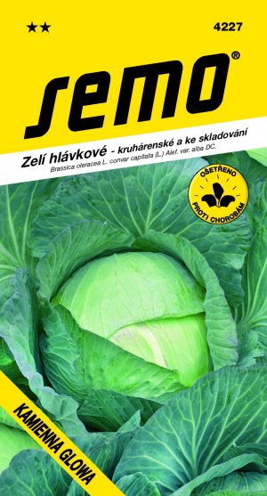 KAMIENNA GLOWA - univerzální pozdní odrůda bílého zelí s velmi dobrými chuťovými vlastnostmi. Obsahuje mnoho vitamínů, minerálních látek, vlákniny a cukru potřebného na kvašení. Vegetační doba je 130 – 150 dnů od výsevu. Kulovité hlávky dorůstají váhy 3 – 6 kg. Velmi vhodná odrůda na přímý konzum, krouhání i skladování.