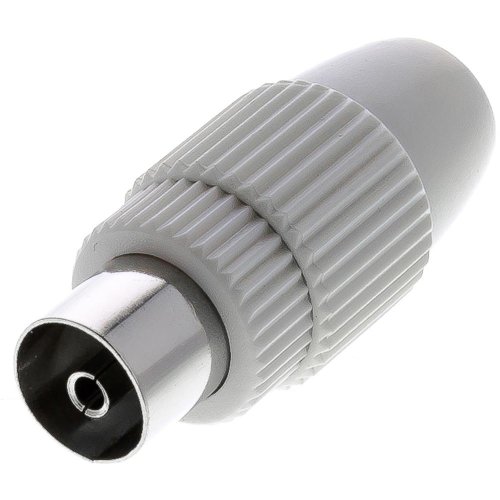 Koaxiální konektor - zásuvka, přímý, bílý plast-nikl, balení visačka