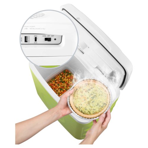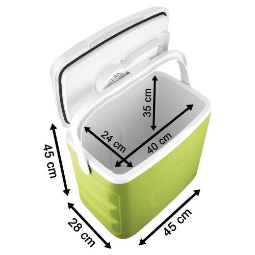 Vlastnosti Vnitřní objem: 30 l Využitelný objem: 29 l Včetně 3 chladicích vložek Zvládnu chlazení, ale nabízím i funkci ohřevu Stylový design, ideální pro použití doma i v přírodě Velká rukojeť pro snadnépřenášení na piknik a kempování Jsem tichá. Maximální hladina hluku: 42 dB(A) 3 možnosti napájení AC 220-240 V DC 12 V - 12 V automobilová zástrčka napájení přes 5V USB – třeba z powerbanky Příkon: 55 W / 45 W / 10 W Jen 10 W v režimu ECO Maximální chladicí výkon 18 °C až 20 °C pod okolní teplotou Maximální výkon ohřevu až 50-60 °C Izolace: Cyklopentan Vnější rozměry (š × v × h): 460 × 440 × 292 mm Vnitřní rozměry (š x v x h): 395 x 245 x 350 (-45) mm Hmotnost: 5,1 kg