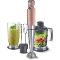 Záruka 6 let na motor Technologie TITANIUM QuadBlade Příkon 1 200 W Extra tichý DC motor Plynulá regulace rychlosti (20 rychlostí) Ergonomicky tvarovaná rukojeť Nerezový nástavec použitelný i pro mixování horkých pokrmů Nerezová sekací čepel Příslušenství 800 ml mixovací nádobka s víčkem Nerezový dvoumetlový šlehací nástavec Sekáček o objemu 1 250 ml s nerezovými noži Tlačítka pro uvolnění odnímatelného nástavce Závěsné očko Délka přívodního kabelu: 1,2 m