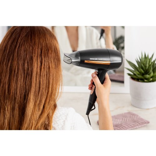 Vysoušeč vlasů se stejnosměrným motorem s dlouhou životností a se sklápěcí rukojetí nabízí 3 úrovně nastavení teploty a 2 rychlosti. Díky funkci Ionic zaručuje hedvábnější a lesklejší vlasy bez kroucení, umožňuje rychlejší vysoušení, omezuje působení statické elektřiny a zabraňuje poškození vlasů. Jeho ergonomicky tvarovaná rukojeť je vhodná pro leváky i praváky.