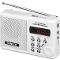 Kapesní radiopřijímač kombinovaný s USB a MiniSD. FM analogový přijímač se zobrazením frekvence na LED displeji FM rozsah: 88 až 108 MHz FM teleskopická anténa USB konektor Slot na micro SD kartu ( max 8GB) Přehrávání MP3 Konektor pro sluchátka Konektor pro linkový vstup Konektor MINI USB pro nabíjení Napájení : litiová baterie Délka hraní: až 10 hod Výkon: 2W(RMS) Dvě barevné provedení: černá a bílá Rozměry: 72 x 110 x 29 mm Hmotnost: 152 g